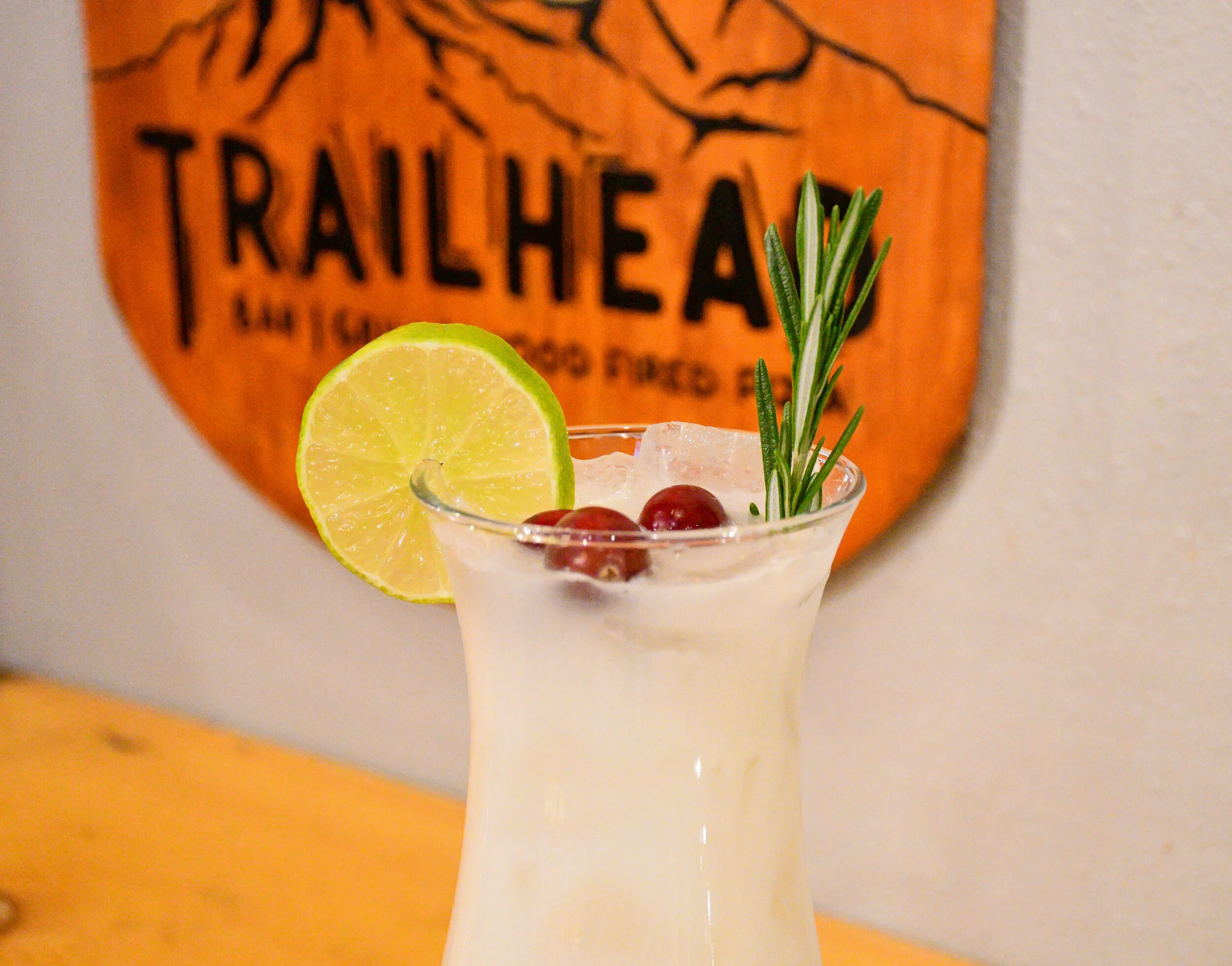 Well a margarita generally has tequila and limes. This margarita is no different, but margaritas are hugely customizable and can range in flavors, from grapefruit margaritas to jalapeño margaritas, we have tried many flavors, but not one like this. What makes this a winter margarita is more than the garnish of cranberries. Jerome the GM at Trailhead made us this drink, using coconut water and coconut milk flavored with vanilla. The coconut complimented and did not over power the tequila, Grand Marnier, and lime. The balance was smooth and cool, but warm flavors made it the perfect winter margarita.